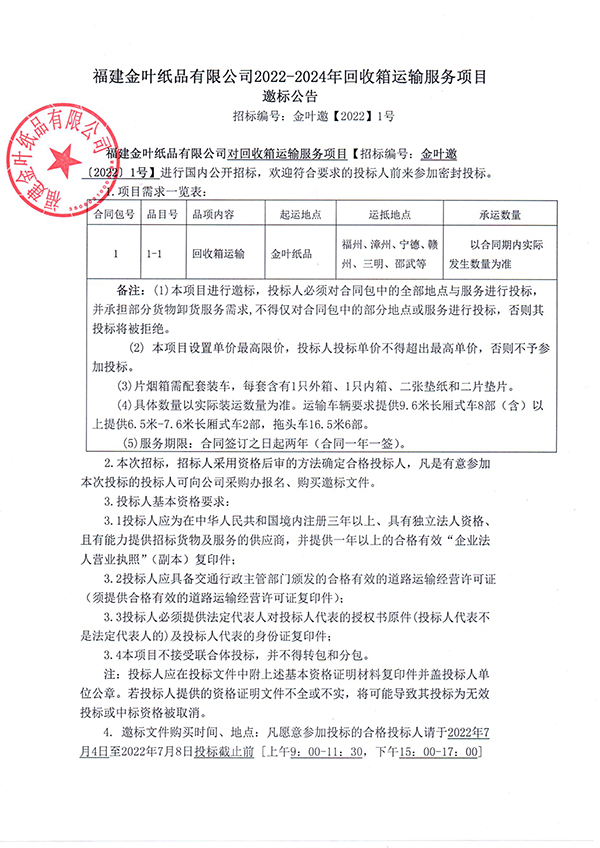 2022-2024年度回收箱運輸服務(wù)項目邀標(biāo)公告